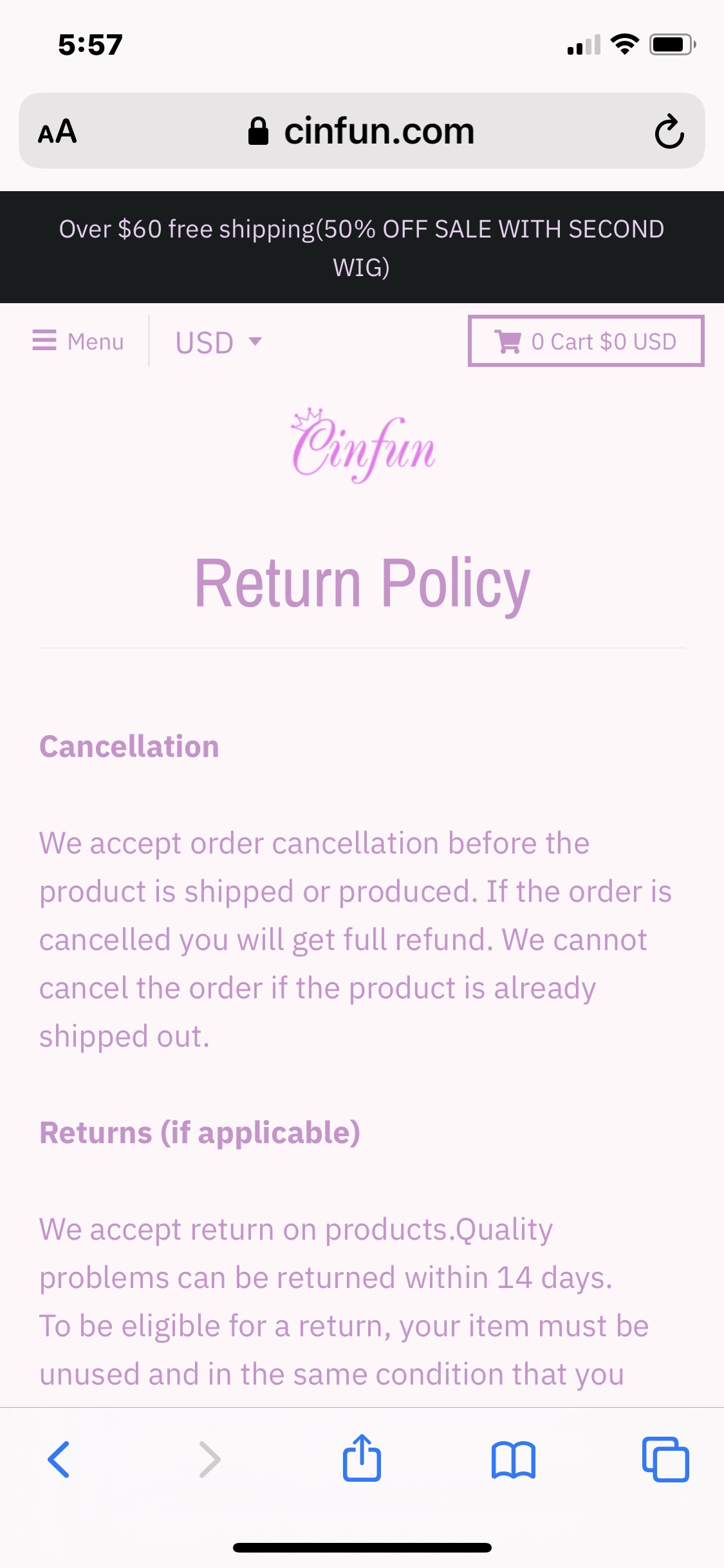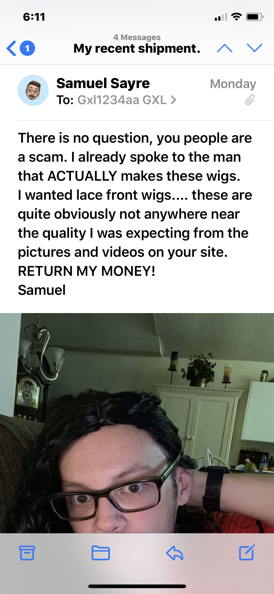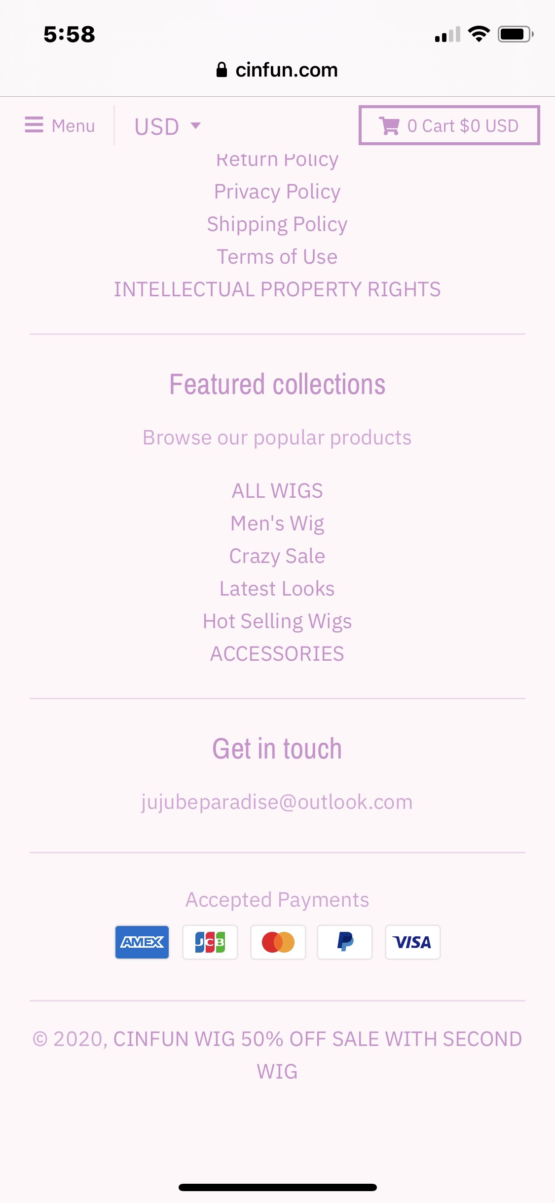 On July 19th I purchased 4 wigs from http://www.cinfun.com. Having owned and styled a few wigs in my day I knew what I was looking at when I visited their site and fell in love with, what turned out to be, someone else’s wigs. Apparently there are several places that copy this mans wigs, don’t fall for it!! The following are my screenshots of my order, emails and pertinent info about what I’ve found about this fraudulent site.