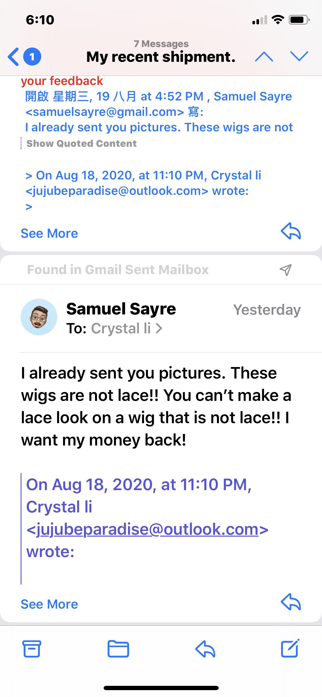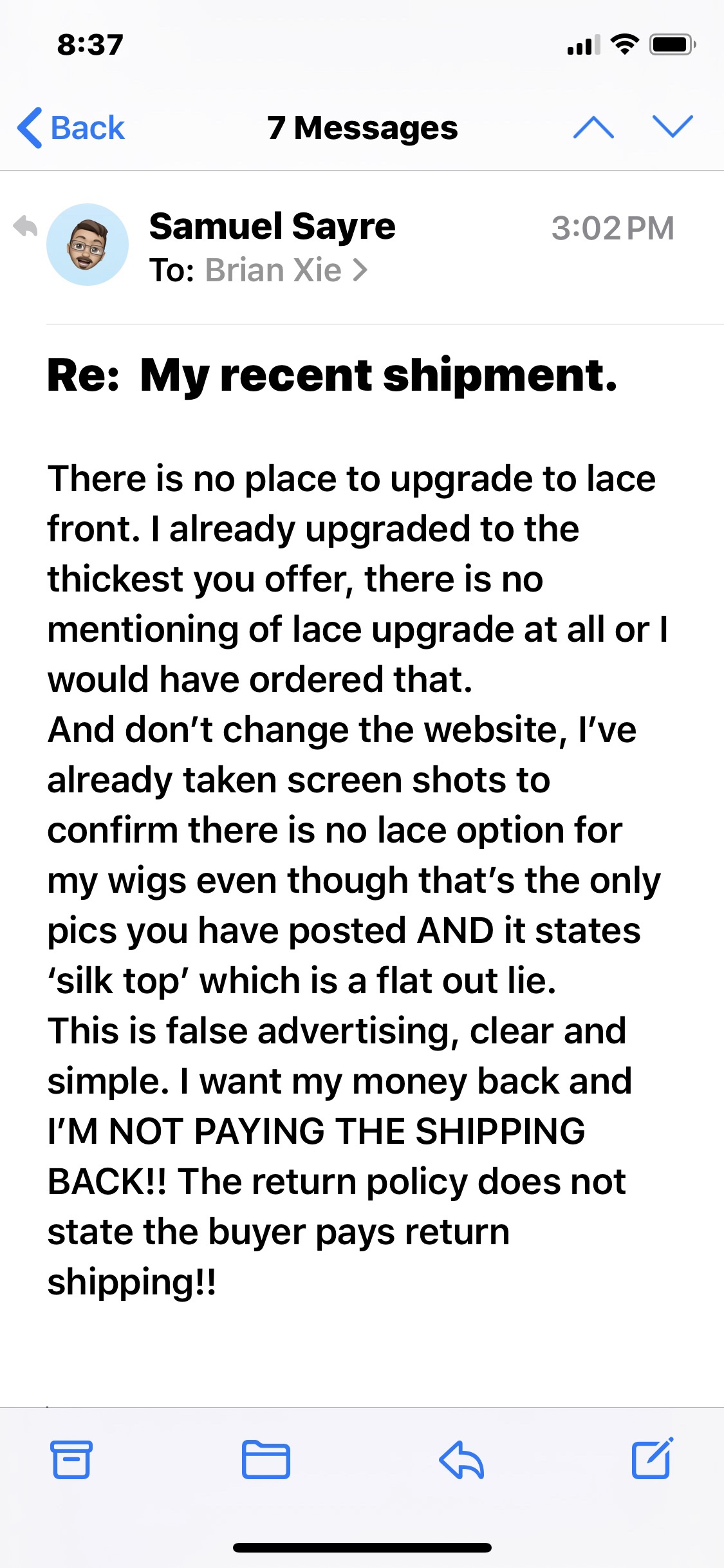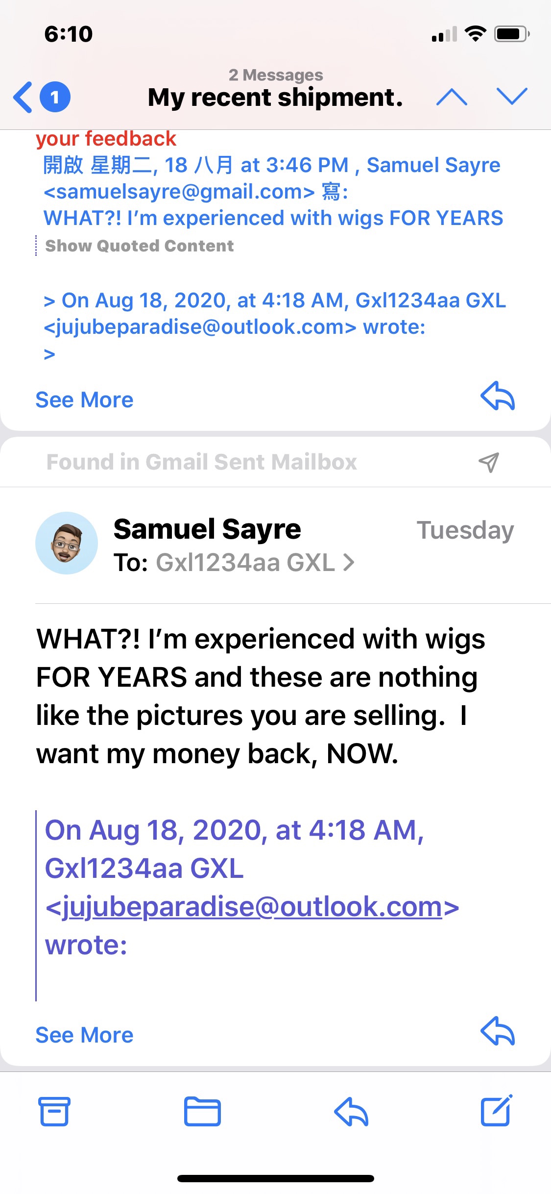 On July 19th I purchased 4 wigs from http://www.cinfun.com. Having owned and styled a few wigs in my day I knew what I was looking at when I visited their site and fell in love with, what turned out to be, someone else’s wigs. Apparently there are several places that copy this mans wigs, don’t fall for it!! The following are my screenshots of my order, emails and pertinent info about what I’ve found about this fraudulent site.